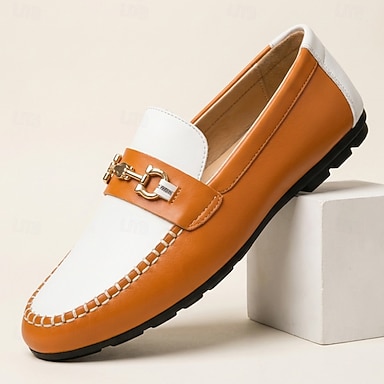 Mocassins orange et blancs pour homme, chaussures décontractées à enfiler avec bout métallique, idéales pour le bureau, le quotidien, les voyages, les tenues de week-end et un style élégant et décontracté.