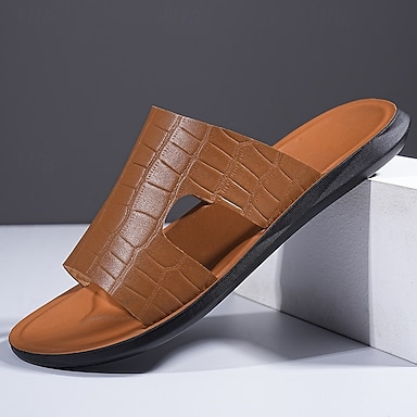 Sandales à enfiler marron pour homme, style croco, bout ouvert, décontractées, légères et confortables, idéales pour les vacances à la plage, les séjours en station balnéaire, la détente au bord de la piscine, les voyages et les loisirs en plein air.