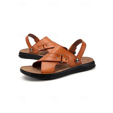 Sandales d'extérieur marron pour hommes, en similicuir, à bout ouvert, avec un design ajustable pour la plage, la randonnée et les voyages d'été.