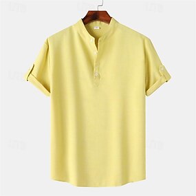 Homme Chemise Chemise en lin Chemise popover Chemise d'été Tenue de plage Chemise à col officier Uni Occasionnel Quotidien Noir Blanche Jaune Vert Claire Manche Courte Col montant Été Vêtement Tenue