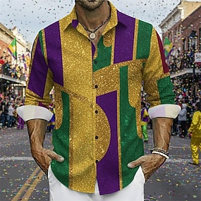 Chemise homme Mardi Gras – Chemise graphique minimaliste à boutons pour fête carnavalesque