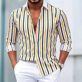 Homme Chemise Chemises imprimées Bloc de couleur Extérieur Travail Jaune Bleu Violet Gris manche longue Col rabattu Printemps été Vêtement Tenue Imprimer