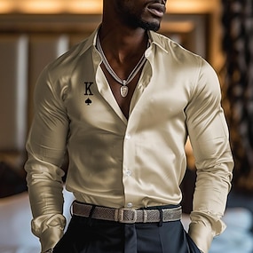 Homme Chemise en satin Chemise Chemise boutonnée Vacances Soirée Noir Blanche Jaune Rose Claire manche longue Col rabattu Automne Printemps été Vêtement Tenue Imprimer