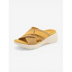 Sandales jaunes à enfiler pour femmes, sandales d'été à brides croisées réglables, chaussures décontractées confortables à bout ouvert pour les promenades estivales et les voyages. &tenue de toute la