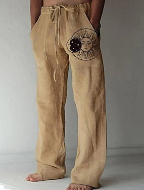 Homme Pantalon en lin Pantalon pantalon été Pantalon de plage Poche Cordon Imprimer Soleil Imprimés Photos Confort Extérieur du quotidien Sortie Vêtement de rue mode Blanche Jaune