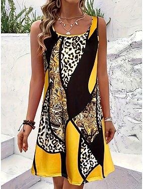 Femmes Mini Robe Robe d'Été Robe trapèze Robe d'été Vacances Occasionnel Boho Plage Soirée Mariage Coupe régulière Graphique Léopard Géométrique Sans manches Col en U Blanche Jaune Vert Été Printemps