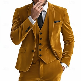Pour des hommes Smoking Costumes de fête Occasionnel Mariage Jaune Rouge Bordeaux Hiver Costume / Tailleur Revers en Pointe Formel Couleur Unie Coupe sur mesure 3 pièces Simple boutonnage un bouton