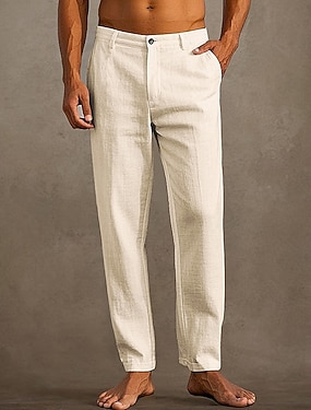 Homme Pantalons en Lin Pantalons Pantalon d'été Jambe Droite Uni Confort Respirant Longueur complète Occasionnel Quotidien Extérieur Vacances Mode Noir Blanche Non Elastique