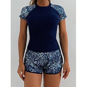 Femmes Maillot Anti UV Combinaison de surf une pièce Maillot de bain Fleuri Tropical Blocage de couleurs Zip Up avec soutien-gorge intégré Coussin amovible Protection Solaire UV UPF50+ Ultra Léger