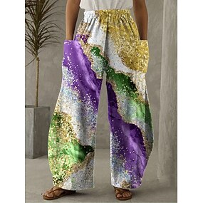 Pantalon Femme Large Carnaval en Lin Pantalons Vacances Vintage Style Ethnique Pleine Longueur Taille Haute Pantalon Graphique Dégradé Poche Taille Élastique Imprimé Confort Confortabilité Inélastique