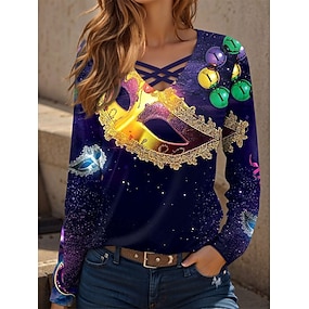 Carnaval Mardi Gras Femmes T-shirt Imprimé Graphique Géométrique ancien Élégant Classique manche longue Col en V Encolure en V Hauts Réguliers Quotidien Week-end Jaune Violet Vert Printemps Hiver