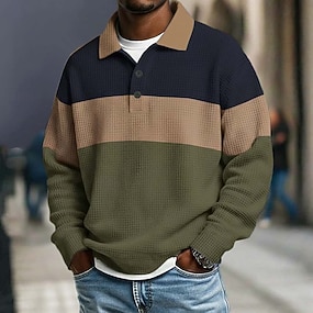 Homme Géométrique Bloc de Couleur Chemises Polo Gaufre manche longue Polos Chemises à Col Vêtement décontracté de travaile Affaires Tenue de travail Tenue quotidienne Boutons Printemps Automne Hiver