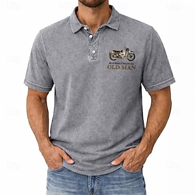 Homme Vieil Homme 100% Coton Polo Chemise délavée à l'acide Manche Courte Polos Revers ancien Occasionnel Extérieur Fête Impression 3D Boutons Printemps & Été Bleu Violet Gris