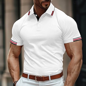 Homme Chemise de golf Polos de Golf Travail Affaires Col Polo Côtelé Classique Manche Courte Basique Moderne Couleur Unie Bloc de Couleur Patchwork Boutons Printemps & Été Coupe régulière Blanche