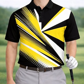 Homme Géométrique Golf Polos de Sport Manche Courte Polos Chemises à Col Occasionnel Athleisure Tenue quotidienne Impression 3D Boutons Été Printemps Noir