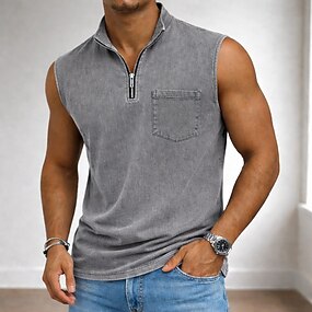 Homme Polo Chemise 100% coton délavée à l'acide Occasionnel Fête Col montant Sans manches Mode Basique Uni Vintage Affligé Printemps & Été Bleu Rose Claire Violet Gris Polo