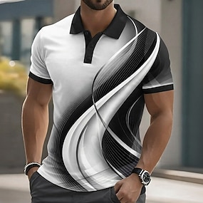 Homme Géométrique Ligne Polos à zip Manche Courte Polos Chemises à Col Vêtement décontracté de travaile Extérieur Athleisure Impression 3D Été Noir