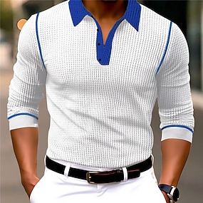 Homme POLO Tee Shirt Golf Plein Air Casual Col polo Classique manche longue Mode Design Couleur Pleine Patchwork Impression 3D Printemps & Automne Standard Vin bleu marine POLO