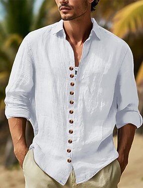 Homme Chemise Chemise en lin Chemise d'été Tenue de plage Uni Vacances Occasionnel Noir Blanche Bleu Vert manche longue Revers Printemps & Été Vêtement Tenue