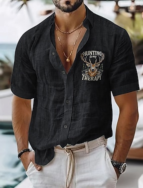Homme Chemise en lin Chemise Décontractée Chemise en coton et lin Chemise Boutonnée À Motif Animal Vacances Tenue quotidienne Noir Blanche Vert Claire Rose dragée Manche Courte Revers Toutes saisons