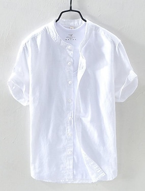 Homme Chemise Chemise en coton et lin Chemise en coton blanc Chemise à col chinois Chemise à col mao Chemise Décontractée Uni Vacances Rue Blanche bleu marine Gris Bleu clair Manche Courte Col