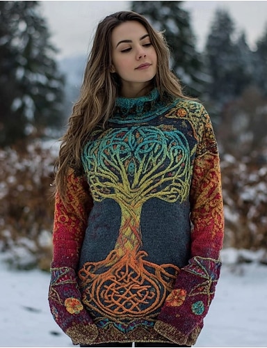 Femmes Pull Vacances ancien Quotidien Géométrique Paisley Côtelé Col roulé Tricoté Imprimé manche longue Hauts Réguliers Tricoter Extérieur Quotidien Week-end Rouge Bleu Automne Hiver