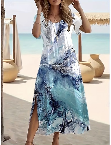 Femmes Robe Midi Robe T-Shirt Robe trapèze Robe d'été Vacances Occasionnel Plage Sortir Coupe régulière Graphique Paysage Abstrait Manche Courte Col ras du cou Col Rond Bleu Champagne Été Printemps