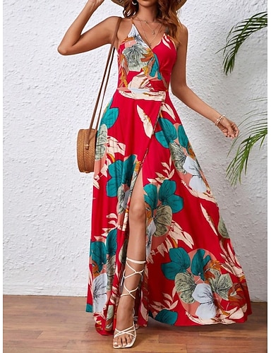 Femmes Robe maxi Robe Décontractée Robe Fleurie Robe Nuisette Élégant Mode Moderne Extérieur Vacances Sortir Coupe régulière Fleuri Sans manches Col en V Noir Blanche Jaune Rouge Été Printemps