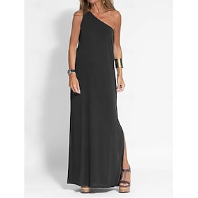 Femmes Robe maxi Robe noire Robe Décontractée Robe de Cocktail Robe de Cérémonie Streetwear Robe Maxi Occasionnel Vacances Rue Fête Coupe régulière Sans manches Une Épaule Noir Jaune Gris Été
