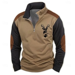 Homme Chasse Cerf Sweat-shirts Sweat-shirt quart de fermeture éclair manche longue Sweat-shirt Demi-zip Vintage Rétro Cowboy Western 3D effet Chasse Demi-zip Hiver Printemps & Automne