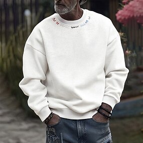Homme Sweat-shirt Noir Blanche bleu marine Col ras du cou Lettre Broderie Sport & Loisir Quotidien Fête Polyester Streetwear Basique Occasionnel Printemps Automne Vêtement Tenue Pulls Capuche Pulls