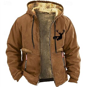 Homme Renard Polaire Sweat à capuche Veste Sweatshirt Mode Frais Quotidien Vintage Rétro À capuche Extérieur Cadeau Chasse Bleu Marron Marron 2 Fermeture éclair Avec Poches Automne Hiver Designer S M