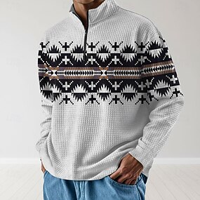 Homme Géométrique Sweat à capuche gaufré Sweatshirt Mode Quotidien Ethnique manche longue Col montant Zip quart Extérieur Maison Bureau Travail Blanche Rouge Bleu Marron Zip Up Automne Hiver Designer