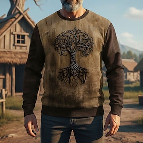 Homme Sweat-shirt Bleu Vert Véronèse Marron Col ras du cou Arbre de la vie Yggdrasil Noeud celtique Imprimé Occasionnel Quotidien Vêtements de rue ancien Viking Automne Hiver Vêtement Tenue Pulls