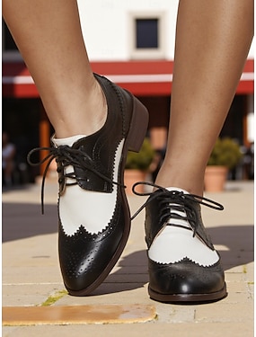 Chaussures Oxford noires et blanches à bout golf pour femmes - Chaussures habillées en cuir à lacets style brogue vintage des années 1950 pour le bureau, les sorties décontractées et la mode