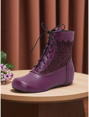 Bottines à lacets violettes pour femmes avec empiècements brodés - Bottines plates de style victorien édouardien des années 1900 pour cosplay, festivals d'automne et tenues d'inspiration vintage