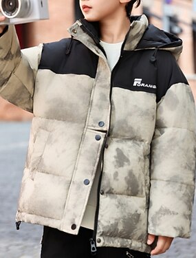 Garçons 3D Doudoune Enfant Uni Lettre Doudoune Manteau Parka manche longue Hiver Actif Frais Enfants 4-13 ans École Rue Coupe régulière