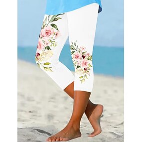 Femmes Chinos Leggings Pantacourt Vacances ancien Streetwear Capris Taille haute Fleuri Graphique Impression Confort Doux Confortable Haute Élasticité Quotidien Extérieur Vacances Blanche Ét