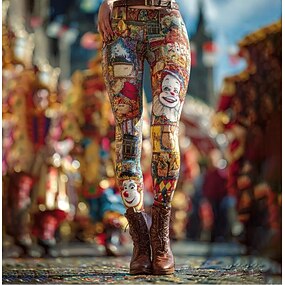 Femmes Leggings Vacances ancien Mode Longueur complète Taille hautePantsNoël Nouvel an Graphique Noël Nouveauté Impression Chaleur Thermique Doux Respirant Élastique Quotidien Extérieur Vacances Jaune
