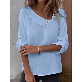 Femmes Chemisier Chemise en faux lin Boutons Couleur Unie Quotidien Élégant Occasionnel manche longue Col en V Hauts Réguliers Quotidien Bleu Vert cendré Blanche bleu marine Fuchsia Été Printemps