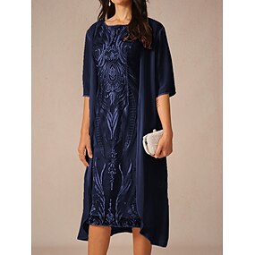 Femmes Hauts en mousseline de soie Couleur Unie Élégant Demi Manches Asymétrique Hauts Longs bleu marine Été Printemps