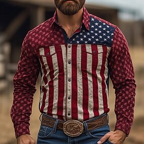 Homme 4 juillet, 250e anniversaire des États-Unis Drapeau américain Patriotique Chemise Chemise Western manche longue Vintage Rétro Occasionnel Fête Vêtements de travail Printemps Automne Col Rabattu