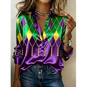 Mardi Gras Femmes Chemise Graphique Géométrique ancien Élégant Moderne manche longue Col de chemise Hauts Réguliers Quotidien Fête Jaune Violet Claire Violet Dorée Vert Été Printemps