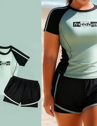 Femmes Maillot anti-UV 2 pièces Tee-shirt de Baignade Maillot de Bain Maillots de Bain Vert Protection UV Contrôle du ventre Surf Canoë-Kayak Plongée en apnée Été