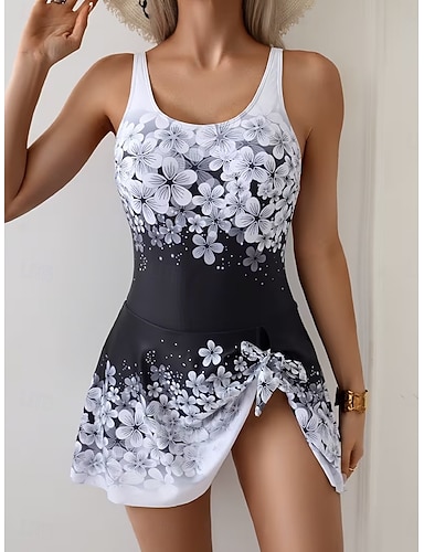 Femmes Maillots de Bain Une Pièce Jupe Maillot de bain Élégant Vacances A Ombre Fleuri Décolleté Sans manches Maillots de bain