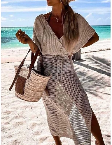 Couverture de maillot de bain femme robe découpes tricot vacances vêtements de plage couleur unie décolleté en V manches courtes