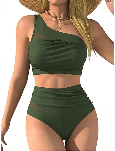 Femmes Maillots de Bain 2 pièces Coquin Maillot de bain Froncé Dos nu Vacances Tenues de plage Uni Col asymétrique Sans manches Maillots de bain