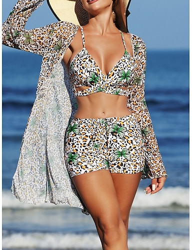 Bikini femme 3 pièces maillot de bain shorts dos nu vacances plage en col V sans manches