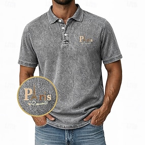 Homme Vieil Homme 100% Coton Polo Chemise délavée à l'acide Manche Courte Polos Revers ancien Occasionnel Extérieur Fête Impression 3D Boutons Printemps & Été Bleu Violet Gris