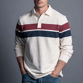 Homme Rayé Polo de rugby manche longue Polos Chemises à Col Vêtements de sport Occasionnel École Extérieur Bureau Tenue quotidienne Boutons Printemps Automne Hiver Blanche Bleu Marron